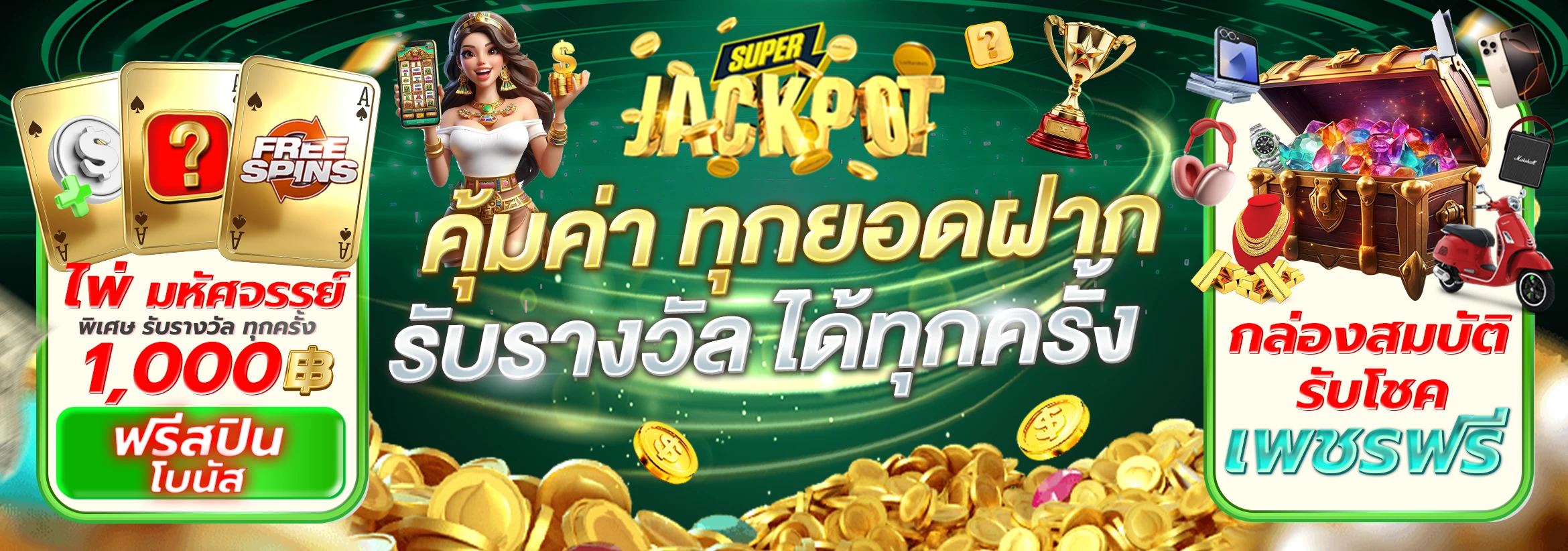ตอบ : โบนัสต้อนรับสมาชิกใหม่ 100% โปรฝากประจำวัน คืนยอดเสีย แจกเครดิตฟรี กิจกรรมลุ้นรางวัลพิเศษ และสิทธิพิเศษอีกมากมาย